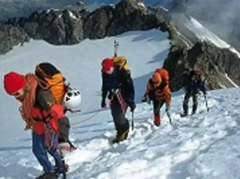 In unserem 2-Tageskurs möchten wir Ihnen gern die wichtigsten Grundlagen des Bergsteigens vermitteln, so dass Sie zukünftig erste Schritte am Berg allein unternehmen können. An diesem Wochenende werden wir uns intensiv mit folgenden Inhalten beschäftigen: Anseilen im Fels, Knotenlehre, Abseilen, Standplatz, erste Klettererfahrung, Anseilen auf dem Gletscher, Gehen mit Steigeisen, Firn- und Eisverankerung, Tourenplanung, Orientierungsmittel (Karte, Kompass, GPS). Und Sie werden sehen, mit ein paar Tricks vom Profi und etwas Übung, ist Vieles sicher leichter als gedacht!