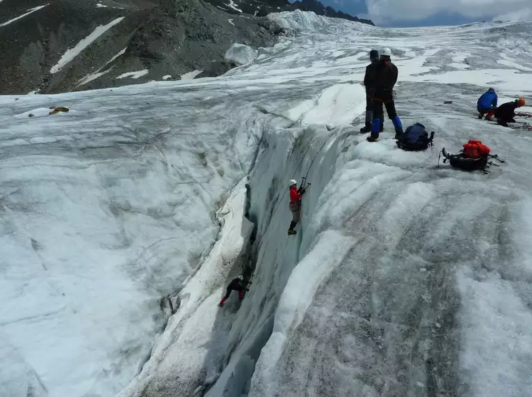 Im Herzen der Stubaier Alpen schlagen wir für diesen Grundkurs unser Lager auf. Die 2.899 Meter hoch gelegene Hildesheimer Hütte bietet uns gleich nebenan perfektes Übungsgelände. Gemeinsam mit Ihrem Bergführer erlernen Sie die für Gletschertouren wichtigen Grundkenntnisse wie Seil-, Kletter- und Rettungstechnik. Je nach Wetter und Verhältnissen werden wir im hüttennahen Klettergarten und Gletscherbruch unser Ausbildungsprogramm und die dazugehörigen Übungen durchführen. Um das Gelernte auch gleich in die Praxis umzusetzen wartet als Höhepunkt der Woche die Besteigung des Zuckerhütl´s auf uns. Der markante Gipfel ist mit seinen 3.505 Metern der höchste Berg der Stubaier Alpen.
