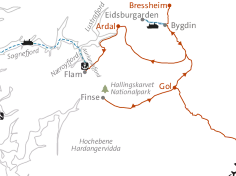 Wichtig: bitte buchen Sie Ihre Flüge passend zu den Transferzeit am An- und Abreisetag. Abfahrt am Anreisetag gegen 13h30 (späteste Ankunft am Flughafen Oslo um 12h30). Der Transfer am Abreisetag von Bergen zum Flughafen Bergen (30 Minuten) erfolgt mit dem Flughafenbus. Bitte keine Abflüge vor 09h30 buchen.