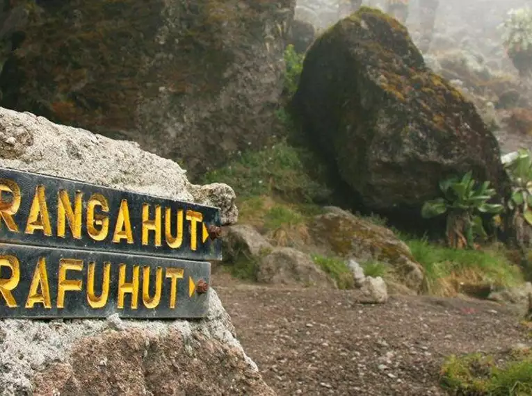 Die Fahrt zum Nationalpark Kilimanjaro nimmt ca. 45 Minuten in Anspruch. Sobald du den Parkplatz erreicht hast, sollten die finalen Vorbereitungen für den Aufstieg erledigt sein. Auch die Gepäckträger packen alles notwendige. Jetzt ist es wichtig, das letzte Mal den Tagesrucksack zu überprüfen. Sobald alle startklar sind, geht es durch den Regenwald auf einem kurvenreichen Pfad, welcher schlammig und rutschig sein kann (Gamaschen und Wanderstöcke nötig!) zur Machame Hütte. Das Camp, wo du übernachtest, befindet sich auf einer Höhe von 3.000 m.